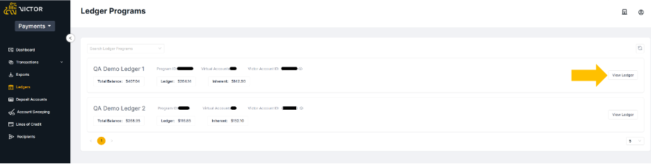 Navigate to Ledgers on the left-hand ribbon. Here is an overview of each Ledger Program configured for your account.